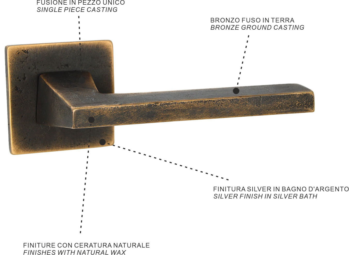 Ground casting is an artisanal process which, thanks to the mastery and passion of expert hands, makes each product unique and each handle exclusive.